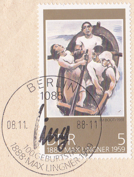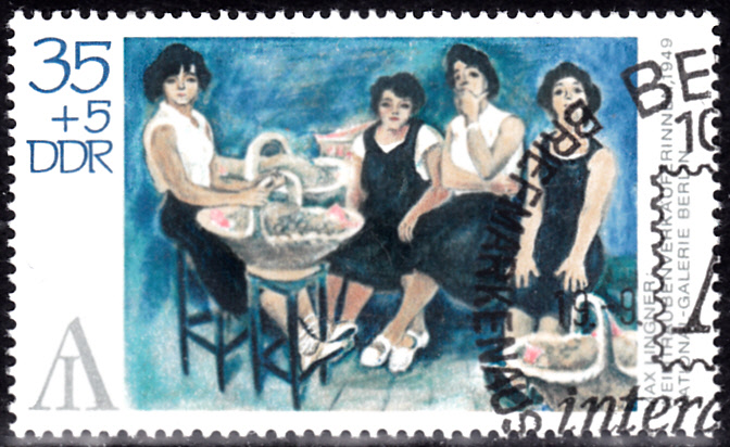 Auf einer Marke der DDR (MiNr 1788) zur Internationalen Briefmarkenausstellung "Interartes" in Berlin wird das Gemälde "Weintraubenverkäuferinnen in Südfrankreich" von Max Lingner gezeigt.