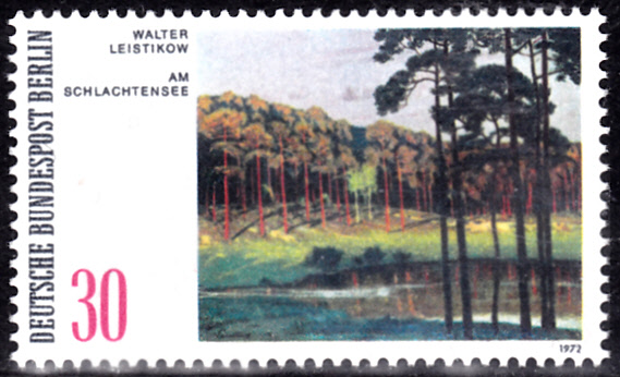 Inn Berlin ist in einer Serie mit Gemälde "Berliner Landschaften" auch eine Marke (MiNr 425) mit dem Gemälde "Am Schlachtensee" Walter Leistikow erschienen.
