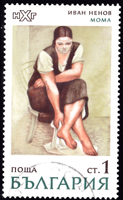 Aus Bulgarien kommt diese Marke mit dem Gemälde "Junge Frau" von Ivan Nenov.