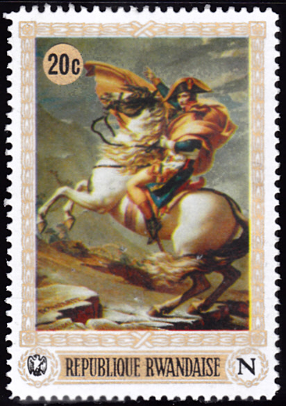In einer Serie zum 200. Geburtstag von Napoleon I. ist in Ruanda eine Marke (MiNr 351 A) mit dem Gemälde "Bonaparte beim Überschreiten der Alpen am Großen Sankt Bernhard" von Jacques-Louis David aus dem Jahr 1800, das er bis 1802 in fünf Versionen schuf.