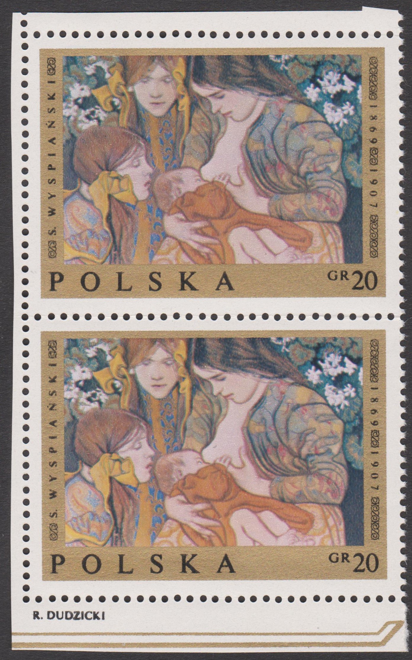 In einer Serie "Polnische Kultur" erschien in Polen diese Marke (MiNr 469 B) mit einem Porträt von Stanisław Wyspiański (links auf der Marke).
