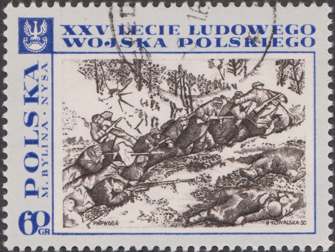 Polen MiNr. 1877 zeigt das Gemälde "Grabenkampf an der Neiße" von Michał Bylina: