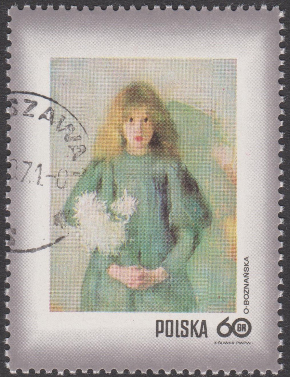 Polen MiNr. 2112 zeigt das Gemälde "Mädchen mit Chrysanthemen" von Olga Boznańska: