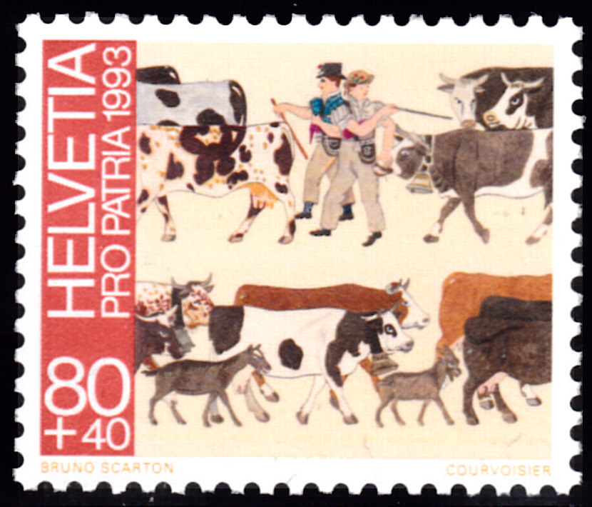 Auf einer Marke aus der Schweiz (MiNr 1504) ist ein Detail aus einem Poya von Sylvestre Pidoux zu sehen.