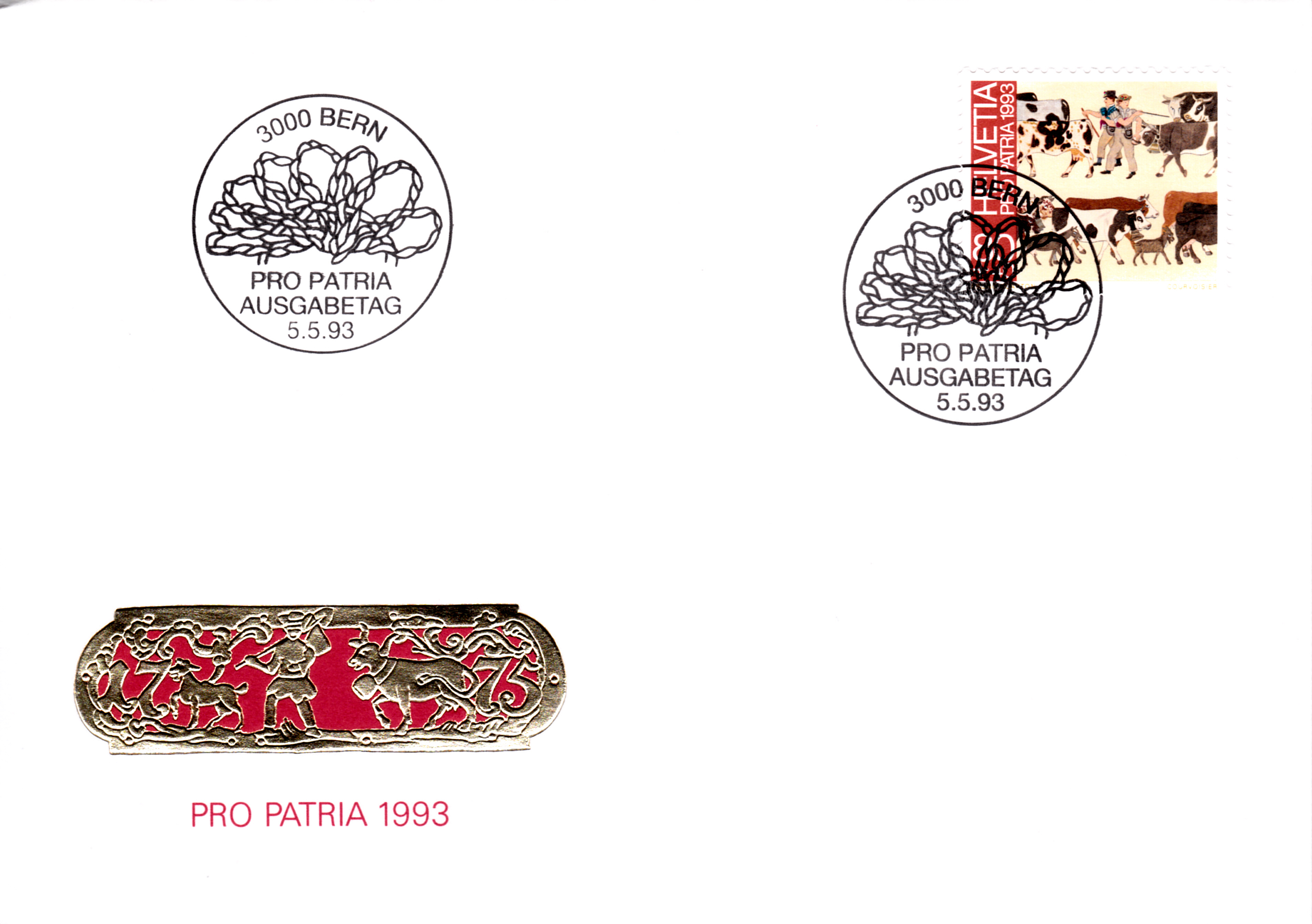 Auf diesem FDC der Post sind alle vier Marken der Serie "Pro Patria 1993" verklebt worden.