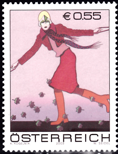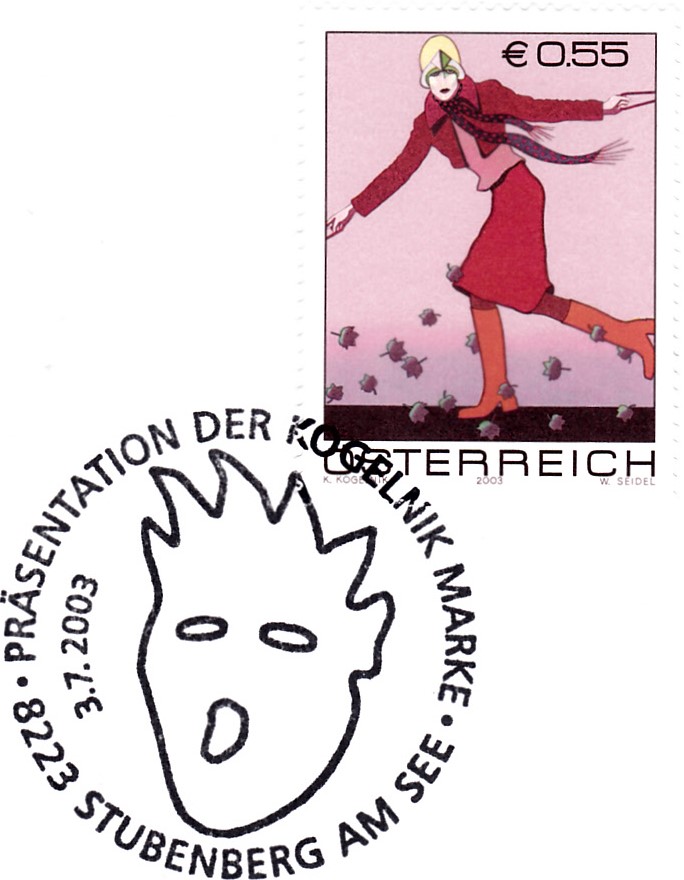 Diese Marke aus Österreich (MiNr 2436) aus der Serie "Moderne Kunst in Österreich" zeigt das Gemälde "Nehmen Sie sich Zeit für die Liebe" von Kiki Kogelnik.