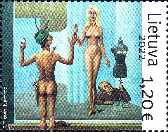 Aus Luxemburg kommt diese Marke (Minr 2301) mit dem Gemälde "Nemrod" von Foni Tissen.