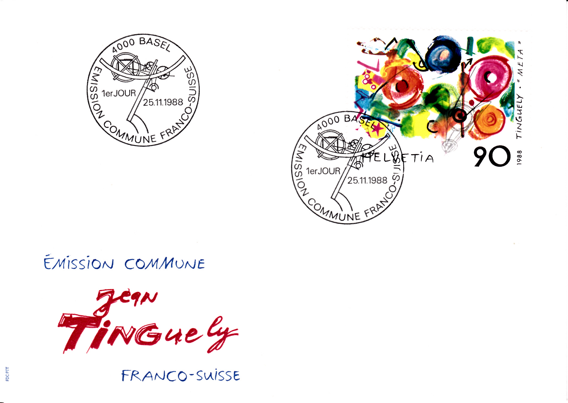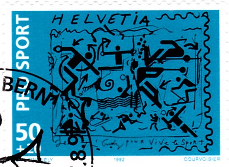 Auf einer Marke der Schweiz (MiNr 1482) wird das Werk "Symbolische Darstellung mit Sport-Piktogrammen" nach einer Graphik von Jean Tinguely gezeigt.