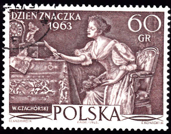 Zum Tag der Briefmarke 1963 erschien in Polen diese Marke (MiNr 1433) mit dem Gemälde "Der Liebesbrief" von Ladislaus von Czachorski.
