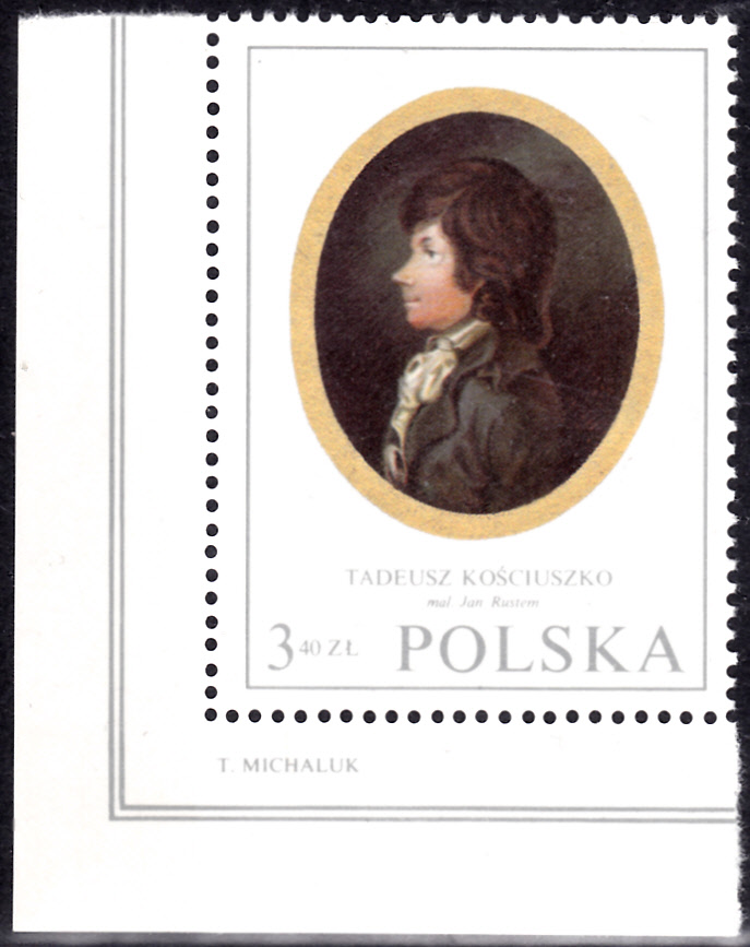 In Polen ist eine Marke (MiNr 2022) mit einem Porträt mit Tadeusz Kościuszko (1746-1817, General) von Jan Rustem erschienen.