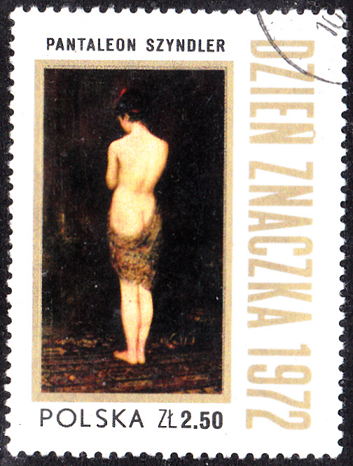 Auf einer Marke aus Polen (MiNr 2191) ist das Gemälde "Mädchen im Bad" von Pantaleon Szyndler abgebildet.