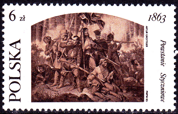 Zum 120. Jahrestag des Januar-Aufstandes 1863 ist in Polen diese Marke (MiNr 2848) mit dem Gemälde "Die Schlacht" von Artur Grottger aus dem Zyklus "Polonia".