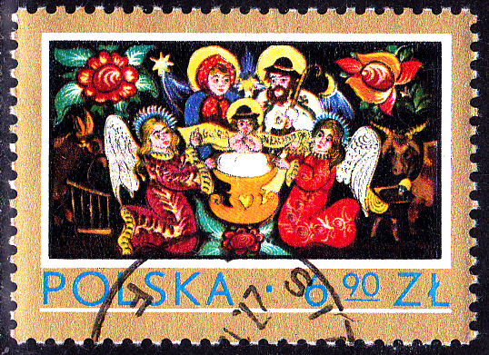 Auf dieser Weihnachtsmarke aus Polen (MiNr 2658) ist die Glasmalereien "Weihnachten" von Zdzisław Wałczak zu sehen.