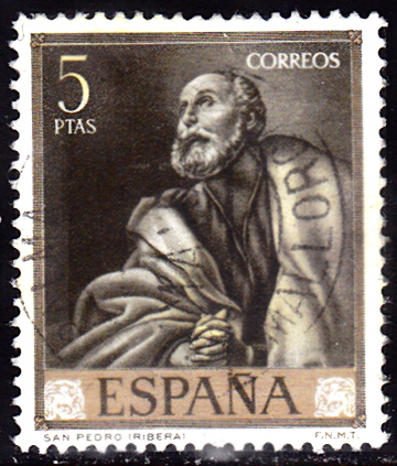 Zum Tag der Briefmarke 1963 ist in Spanien in einer Briefmarkenserie mit Gemälden von José de Ribera diese Marke zu 5 PTA (MiNr 1392) mit dem Gemälde "Hl. Petrus" von José de Ribera erschienen.