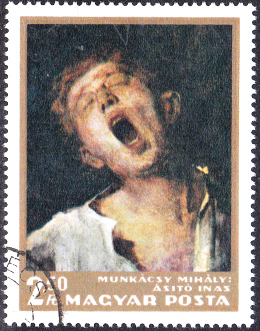 Auf einer zweiten Marke dieser Serie (MiNr 2296 A) wird das Gemälde "Gähnender Bursche" von Mihály von Munkácsy gezeigt.