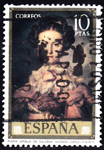 Zum Tag der Briefmarke 1973 ist in Spanien in einer Briefmarkenserie mit Gemälden von Vicente López Portaña diese Marke zu 10 PTAS (MiNr 2047) mit einem Porträt von Maria Amalia von Sachsen (1724-1760) von Vicente López Portaña erschienen.