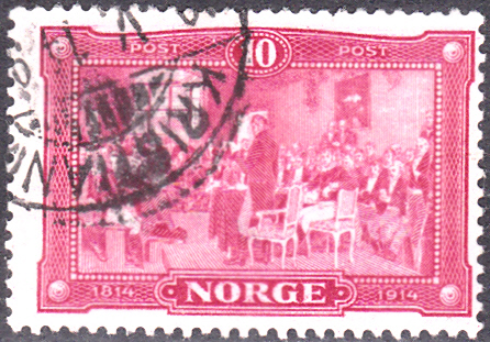 In Norwegen ist zum Jubiläum "100 Jahre Unabhängigkeit" diese Marke (MiNr 93) mit dem Gemälde "Reichsversammlung von Eidsvoll 1814" erschienen.