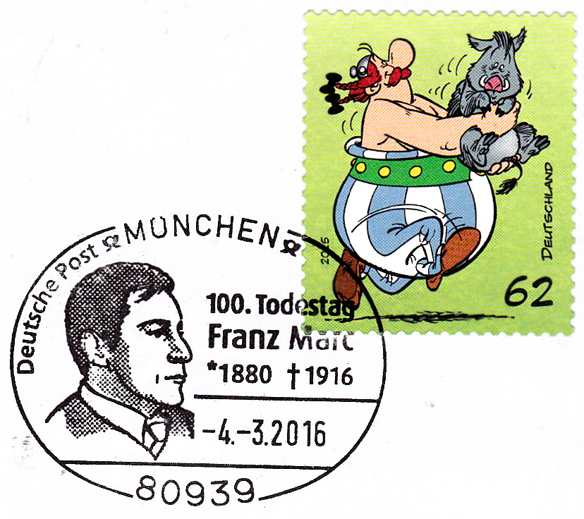 Bei der Deutschen Bundespost erschien in der Serie "Deutsche Malerei des 20. Jahrhunderts" eine Marke (MiNr 1617) mit dem Werk "Pferd in der Landschaft" (1910) von Franz Marc. Das Gemälde befindet sich im Museum Folkwang in Essen.