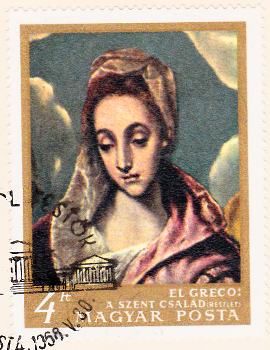 1968 erschien in der ungarischen Serie "Gemälde spanischer und italienischer Meister im Museum der Schönen Künste in Budapest" auch eine Marke (MiNr 2414 A) mit einem Detail "Maria" aus dem Gemälde "Die Heilige Familie mit der hl. Elisabeth" von El Greco. Die Marke gibt es auch geschnitten.