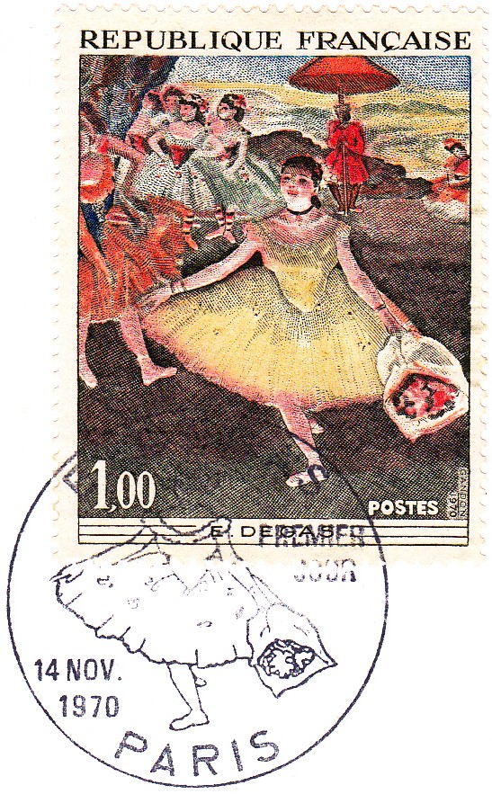 Auf dieser Marke aus einem Scheichtum am Persischen Golf ist wiederum eine "Tänzerin" zu sehen. Dieses Motiv gibt es in mehreren, fast identischen Variationen.