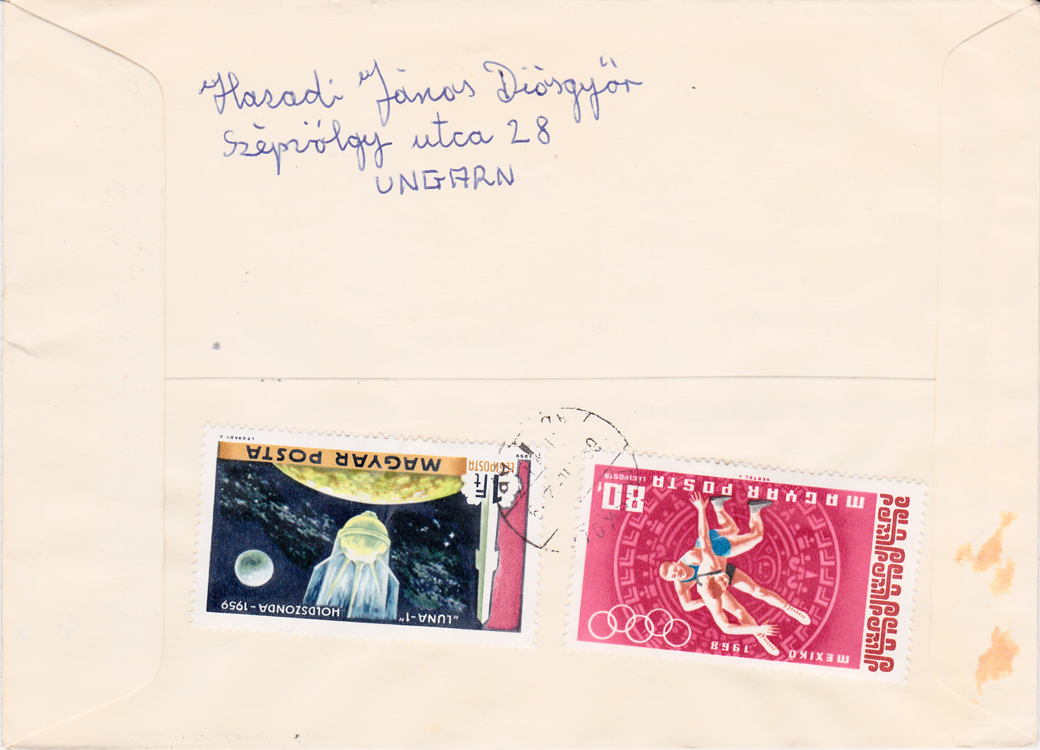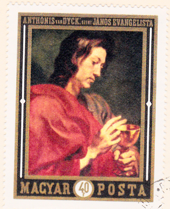 In einer Serie "Gemälde holländischer Meister" ist in Ungarn auch eine Marke (MiNr 2555 A) mit dem Gemälde "Der Evangelist Johannes" von Anthonis van Dyck erschienen. Hier wurde eine Marke auf einem Brief mit Einschreiben nach Deutschland zur Frankatur verwendet. Die Marke gibt es auch geschnitten. Rückseitig wurde eine Marke zur Vervollständigung des Portos verklebt.