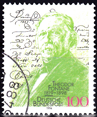 Zum 175.Geburtstag von Theodor Fontane erschien bei der Deutschen Bundespost eine Marke (MiNr 1767) mit einem Porträt von Fontane nach einer Kreidezeichnung von Max Liebermann.