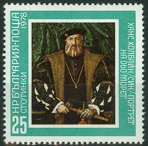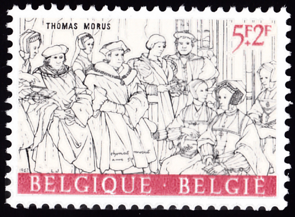 In einer Ausgabe "Erasmus und seine Zeit" ist diese Marke (MiNr 1487) mit der "Familie des Sir Thomas Morus" (1478-1535 nach einer Zeichnung von Hans Holbein d. J. erschienen.