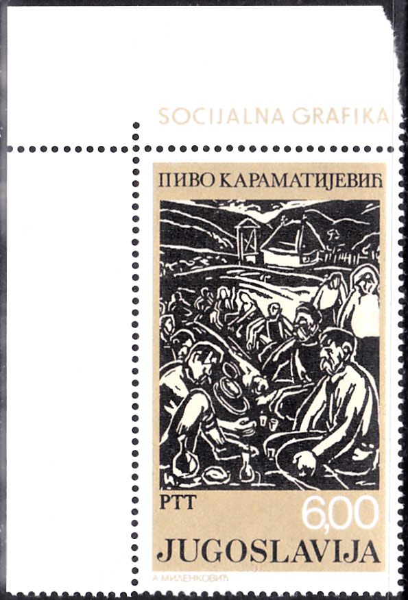 In der Serie "Soziale Grafiken" ist in Jugoslawien diese Marke (MiNr 1761) wird die Grafik "Die Mahlzeit" Prvoslav Pivo Karamatijević gezeigt.