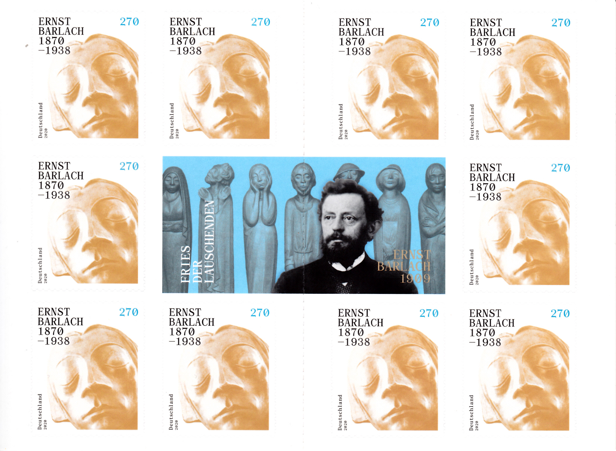 Der Kopf mit (dem Gesicht von Käthe Kollwitz) der Bronzeskulptur "Der Schwebende" von Ernst Barlach wurde bereits 1970 für eine Marke der DDR (MiNr 1611) verwendet.
