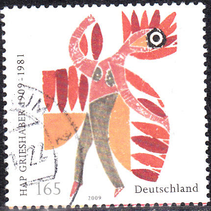 Zum 100. Geburtstag erschien bei der Deutschen Post eine Sondermarke (MiNr 2722) mit einem Farbholzschnitt "Der Feuervogel" von HAP Grieshaber.