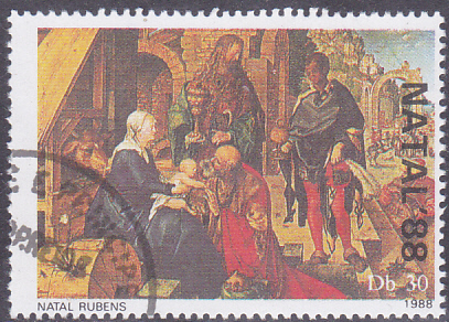 Eine Marke der Weihnachtsserie 1988 aus Sao Tomé und Principe (MiNr 1091) zeigt das Gemälde "Anbetung der Könige" von Albrecht Dürer. Diese Marke ist immer ohne Landesnamen!