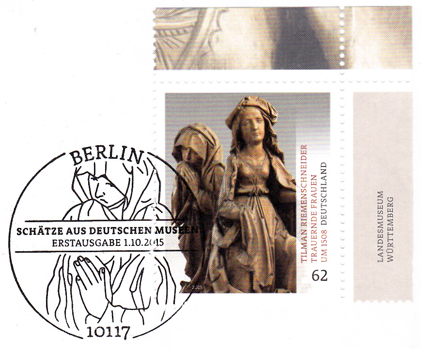 Am 1.10.2015 erschien bei der Deutschen Post eine Marke "Schätze aus deutschen Museen" (MiNr 3180) mit der Holzskulptur "Trauernde Frauen" von Tilman Riemenschneider. Die Skulptur befindet sich heute im Landesmuseum Württemberg in Stuttgart.