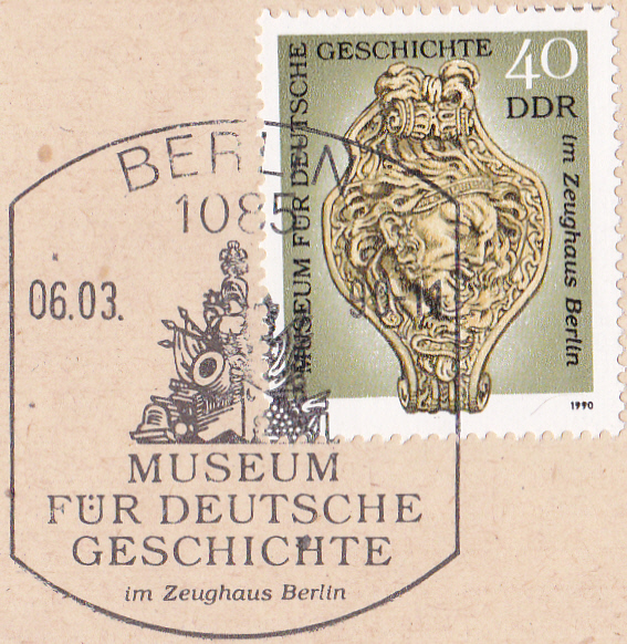 Auf der Marke zu 40 Pf (MiNr 3318) zum Thema "Museum für Deutsche Geschichte im Zeughaus Berlin" wird einer der 22 Köpfe sterbender Krieger in den Schlusssteinen der Rundbogenfenster im Erdgeschoss des Berliner Zeughauses von Andreas Schlüter abgebildet.