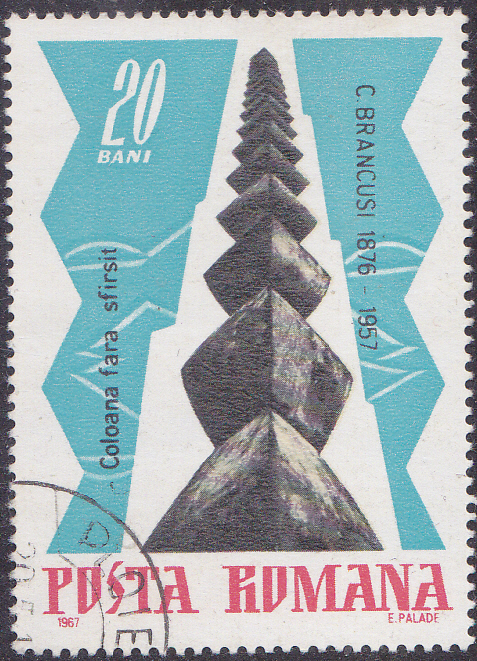 Zum Tag der Briefmarke 1966 und zur Briefmarkenausstellung "NATIONALA ’66" erschien in Rumänien eine Marke (MiNr 2552) mit der Skulptur "Die endlose Säule" von Constantin Brâncuși, einem Flugzeug über Hochhäusern und einem Aussichtsturm. Die Marke wurde mit waagerecht anhängendem Zierfeld gedruckt, das einen Zuschlag von 45 B aufweist.