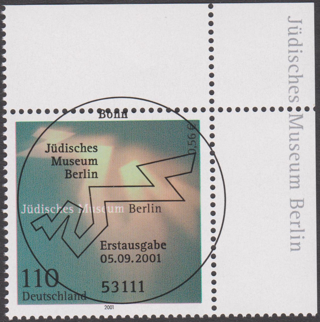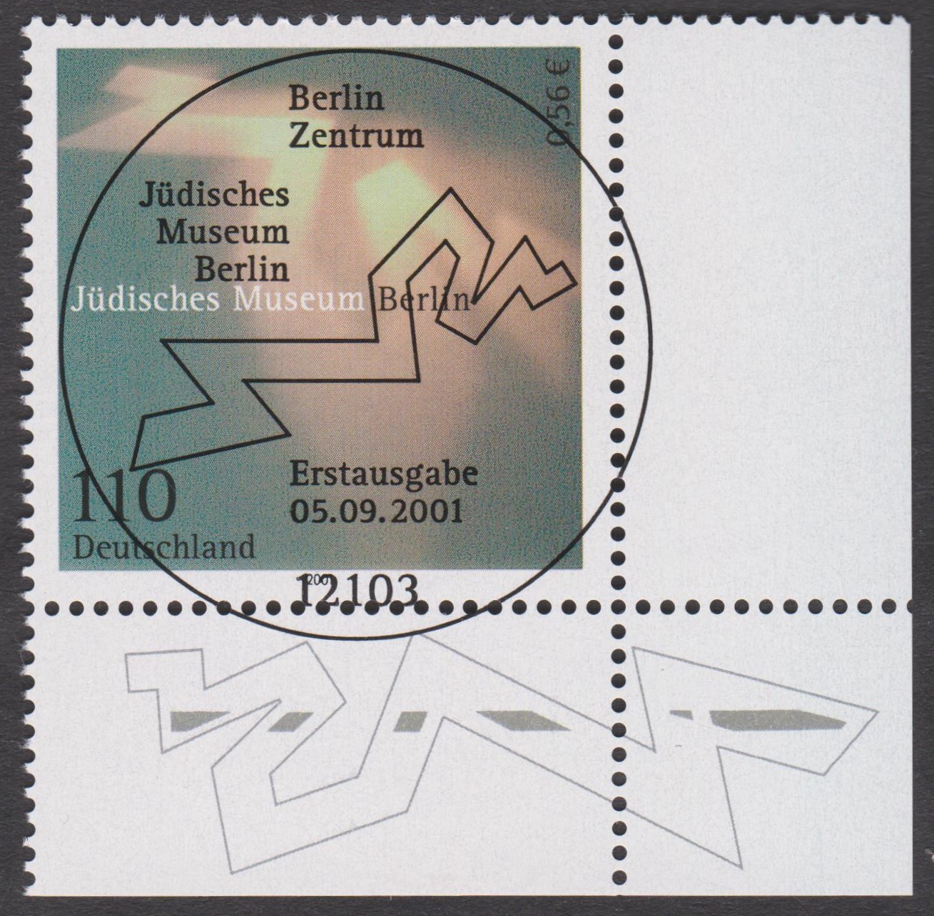 Das Motiv des Sonderpostwertzeichens "Jüdisches Museum Berlin", Bund MiNr. 2216, ist der Grundriss des im Dekonstruktivismus gestalteten Museumsgebäude, hier auf ETB 42/2001: