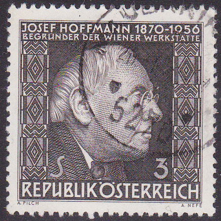 Zum 10. Todestag von Josef Hoffmann erschien in Österreich eine Marke mit seinem Porträt (MiNr 1205).