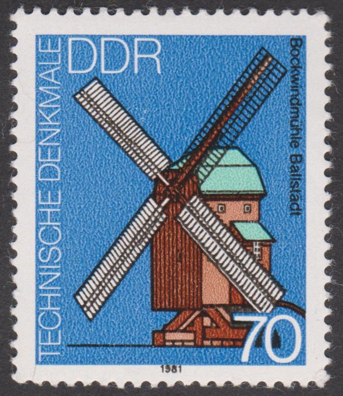DDR MiNr. 2660 zeigt die 1850 gebaute Bockwindmühle in Ballstädt: