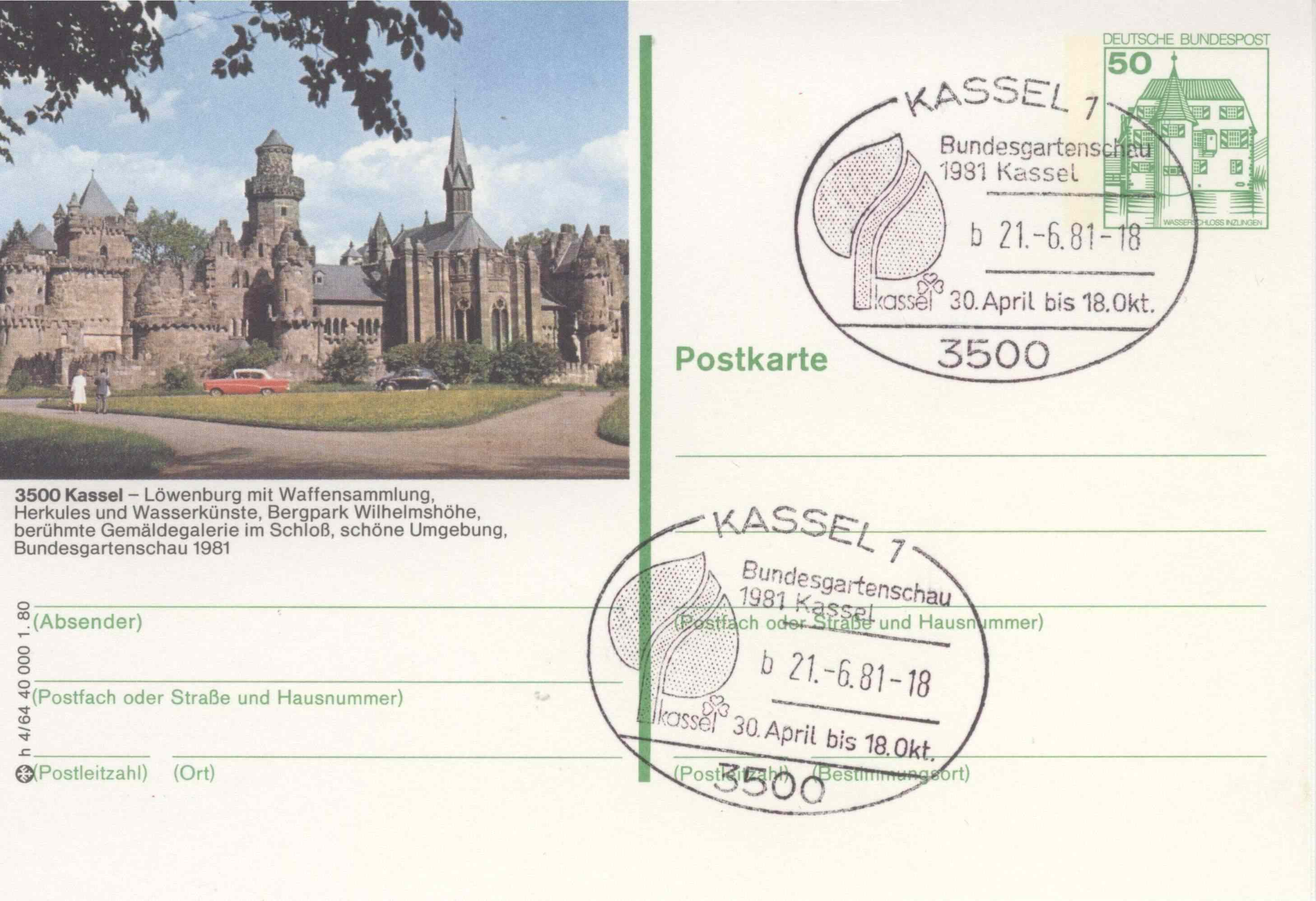 Dieser Maschinen-Stempel-Einsatz wirbt 1980 für die Bundesgartenschau 1981 in Kassel.