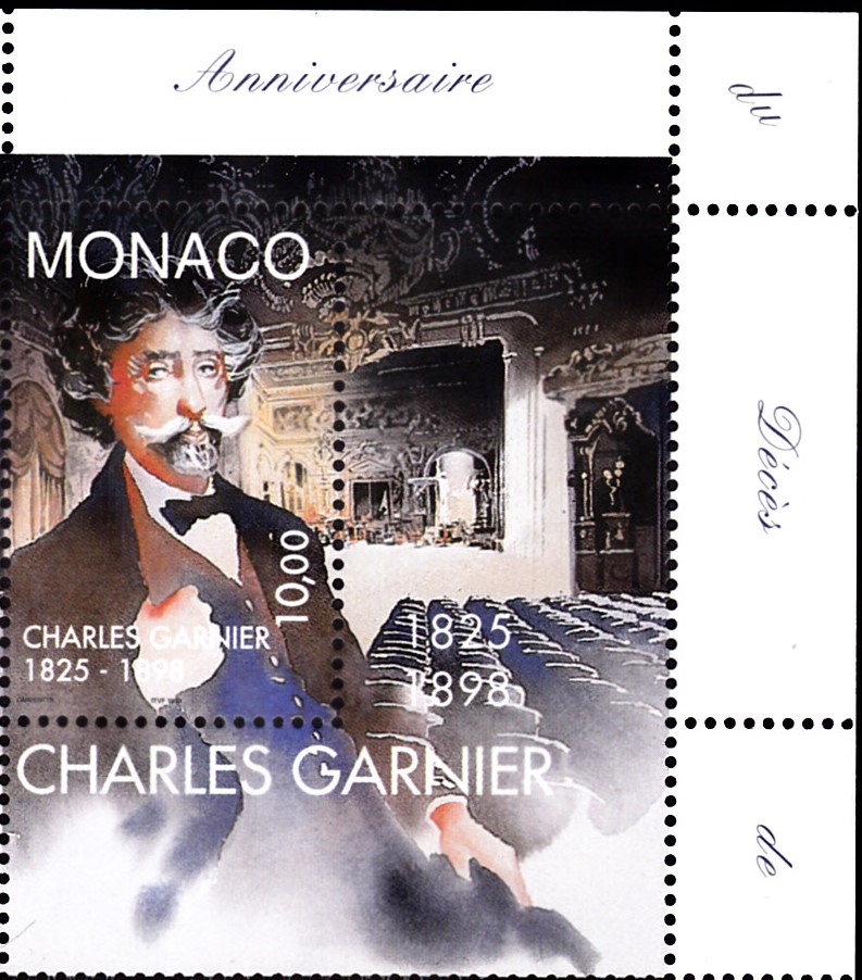 In Monaco ist zum 100. Todestag von Charles Garnier eine Marke (MiNr 2406) mit dem Portrait von Charles Garnier erschienen.