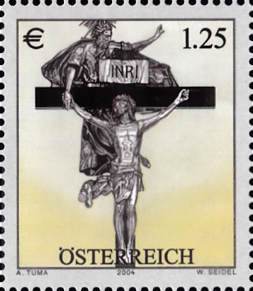 Aus Österreich kommt diese Marke (MiNr 2481) mit dem Kreuz des Hochaltars in der Basilika von Mariazell von Johann Bernhard Fischer von Erlach.