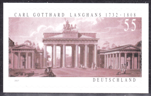 Zum 275. Geburtstag von Carl Gotthard Langhans ist bei der Deutschen Post eine Marke (MiNr 2634) mit dem Brandenburger Tor erschienen.