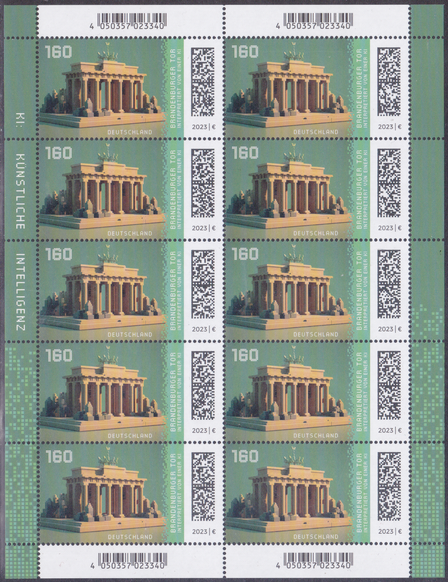 Bei der Deutschen Post ist am 2.11.2023 in der Serie "Historische Bauwerke Deutschlands" eine Marke (MiNr 3796) mit dem Brandenburger Tor erschienen.