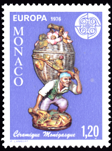 Eine Keramikskulptur "Der Winzer" aus dem 19. Jahrhundert ist auf der Europamarke 1976 zu 1,20 Fr aus Monaco (MiNr 1231) abgebildet.