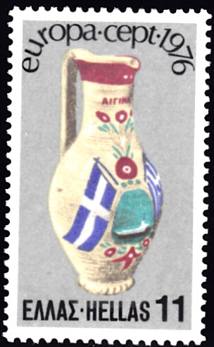 ASuch die dritte Europamarke 1976 aus Griechenland (MiNr 1234) mit einem Keramikkrug aus Ägina passt in dieses Thema.