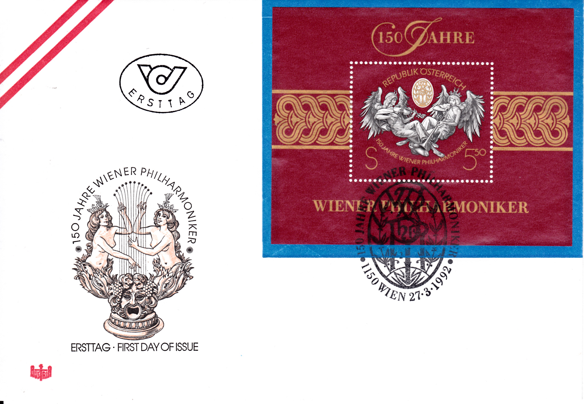1992 ist in Österreich zum Jubiläum "150 Jahre Wiener Philharmoniker" ein Block (MiNr Block 11) mit einer Marke (MiNr 2054) mit dem Motiv "Musizierende Engel" erschienen.
