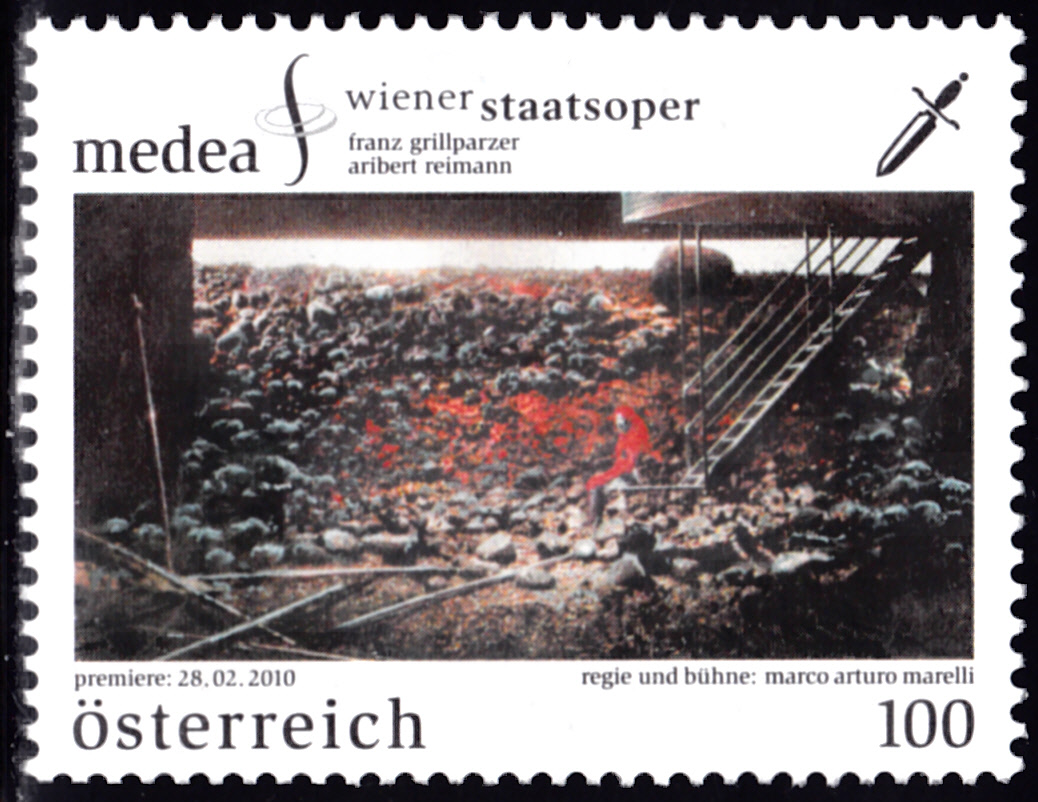 Zur Premiere der Oper "Medea" von Aribert Reimann in der Wiener Staatsoper ist in Österreich diese Marke (MiNr 2857) mit einer Szene aus dieser Oper erschienen.