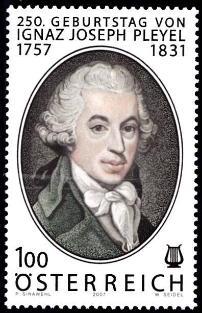 Zum 250. Geburtstag von Ignaz Joseph Pleyel erschien in Österreich eine Marke mit seinem Porträt nach einem Stich von Johann Neidl (1776–1832).