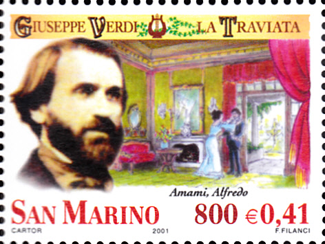 In San Marino ist in der Ausgabe "400 Jahre Oper" eine Marke (MiNr 1819) zu Ehren von Giuseppe Verdi erschienen. Auf der Marke werden ein Porträt von Giuseppe Verdi und eine Szene aus der Oper "Aida" gezeigt.