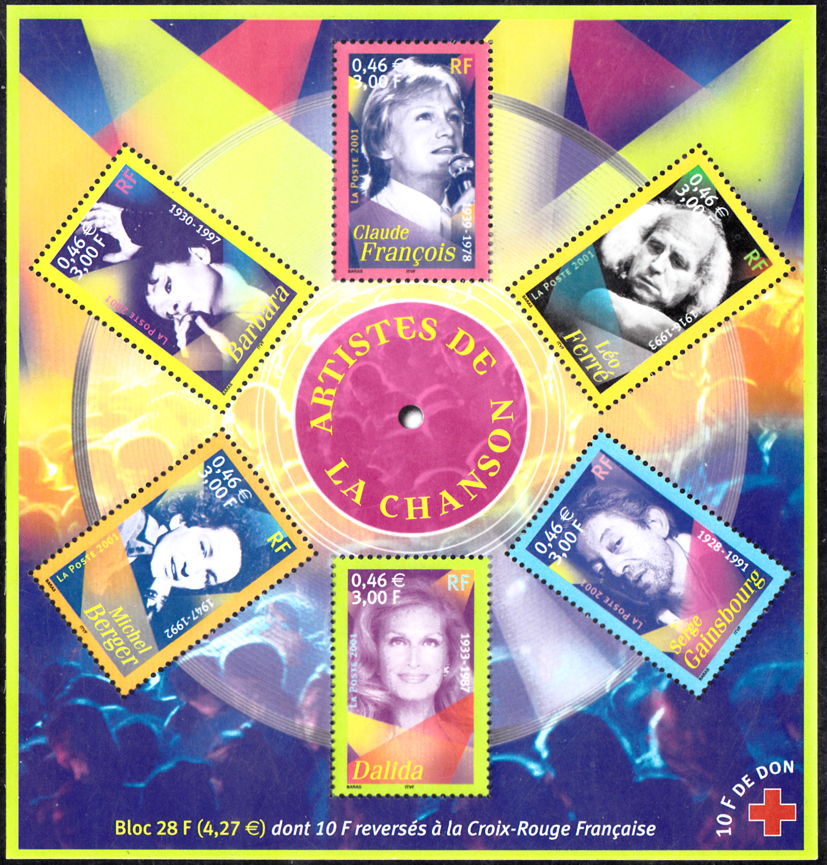 In einer Serie "Chansonsänger" ist in Frankreich auch eine Marke (MiNr 3536) mit einem Porträt von Barbara erschienen.