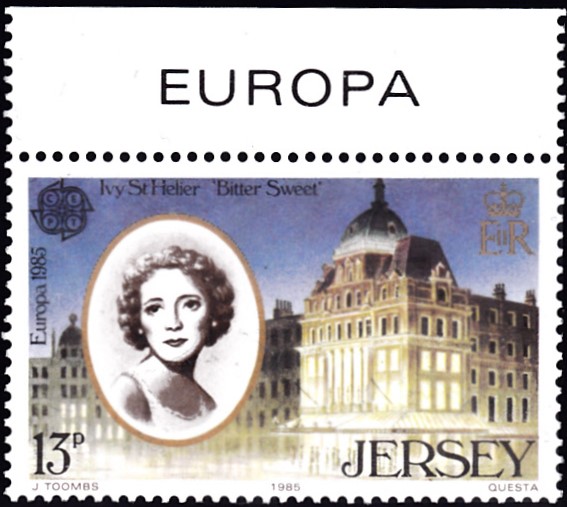 Eine Europamarke 1985 aus Jersey (MiNr 348) zeigt auch ein Porträt von Ivy St. Helier.